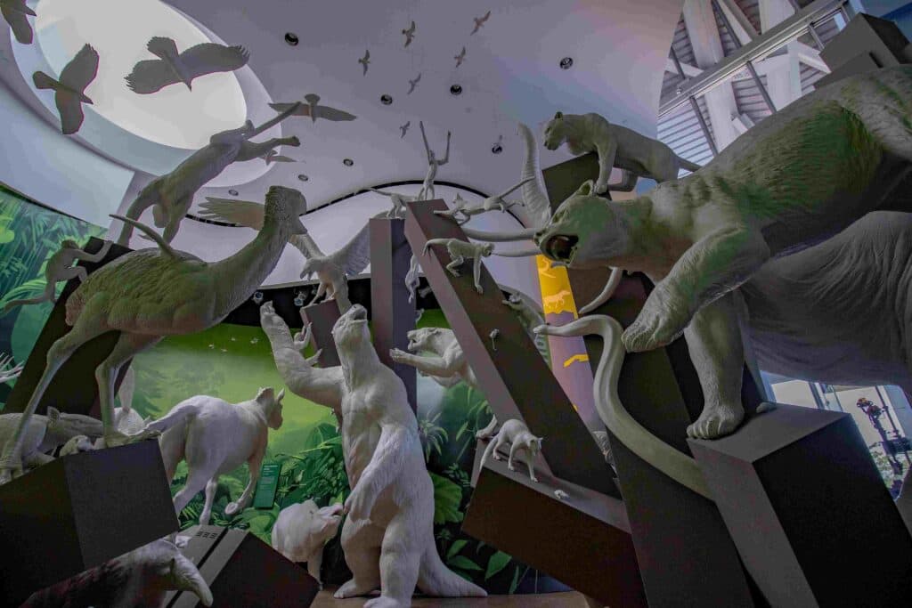 • The Great Exchange: Two large sculptural groups of animals represent the megafauna that was part of the great exchange of species that took place between North and South America when the Isthmus of Panama joined them after 70 million years of separation.