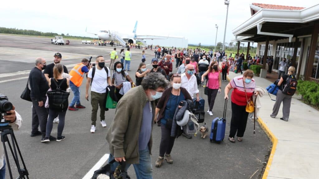 El aeropuerto internacional Scarlett Martínez, en Río Hato, recibió este martes a 156 turistas canadienses, tras el reinicio de operaciones de la aerolínea canadienses Air Transat que opera vuelos turísticos directos desde Canadá con 1 vuelo semanal y dos vuelos semanales (lunes y martes) a partir del 13 de diciembre de 2021.