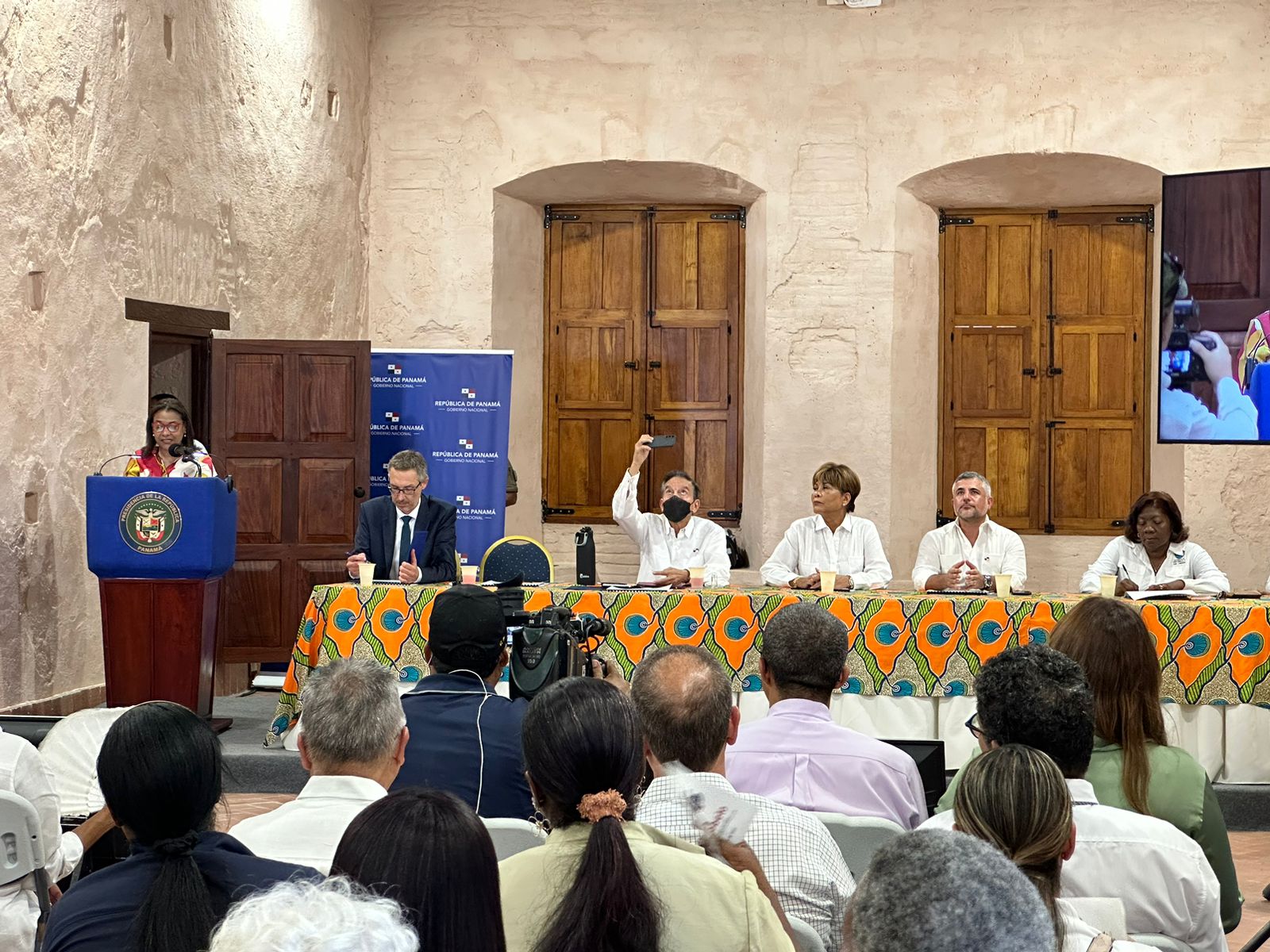 Durante las actividades, acompañaron al mandatario, los ministros Giselle González (Cultura) y Rafael Sabonge (MOP); Irasema de Dale, gobernadora de Colón; Alexander Leicht, director regional de Unesco; Nilda Quijano, fundadora y directora ejecutiva del Patronato de Portobelo y Fuerte San Lorenzo, entre otros invitados.